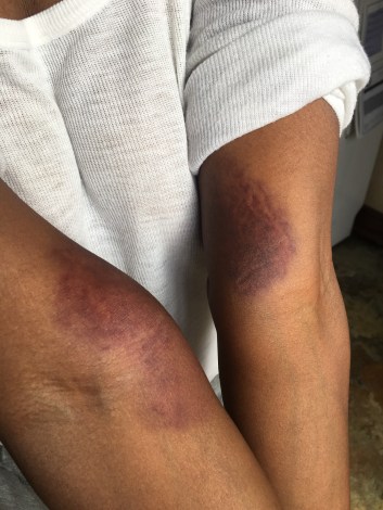 No this is not evidence of S&M or an abusive boyfriend! I’m rather chuffed about my purple bruising because it is in fact evidence of my long awaited archery lesson! This happens when you accidentally smack your bow arm with the string of the bow as you discharge the arrow. A novice mistake….. because I am a novice! #PayingMySchoolFees πΉ πΉπΉπΉ